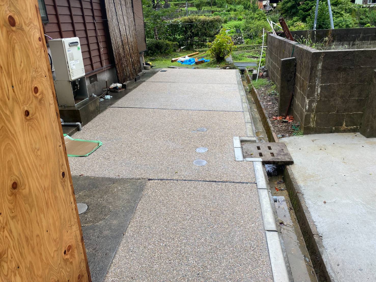 こんにちは。毎日熱いですね。さて、今回は雑草対策に有効なリフォームの紹介です。写真は豆じゃり洗い出し仕上に施工したものです。もちろん見た目も趣ある感じになるんですが、豆砂利洗い出しは、雑草対策にも効果があります。暑い日の草むしりは嫌ですよね。そこを補ってくれる施工です。お気軽にご相談ください!↑豆砂利↑施工実績