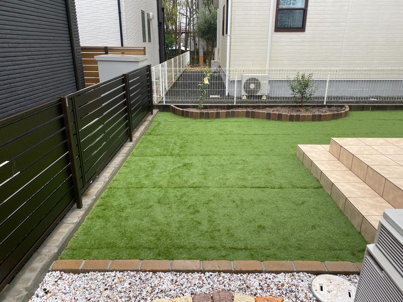 ↑ 人工芝・花壇の施工完了です。